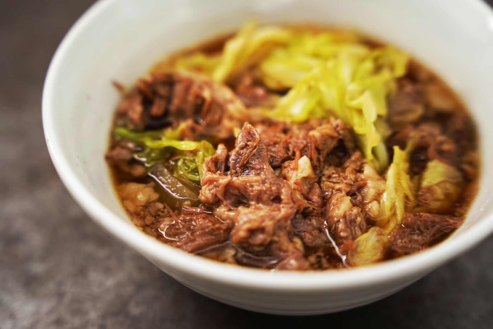 A5和牛の旨味を活かし焼肉屋ならではの甘味もある味付けで、和風醤油ベースのご飯がススム牛筋煮込みです。