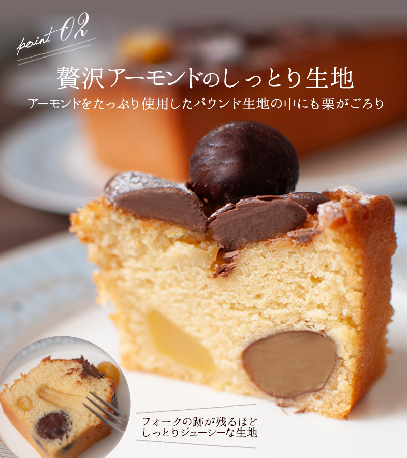アーモンドをたっぷり使用したパウンド生地の中にも栗をごろりと入れました!