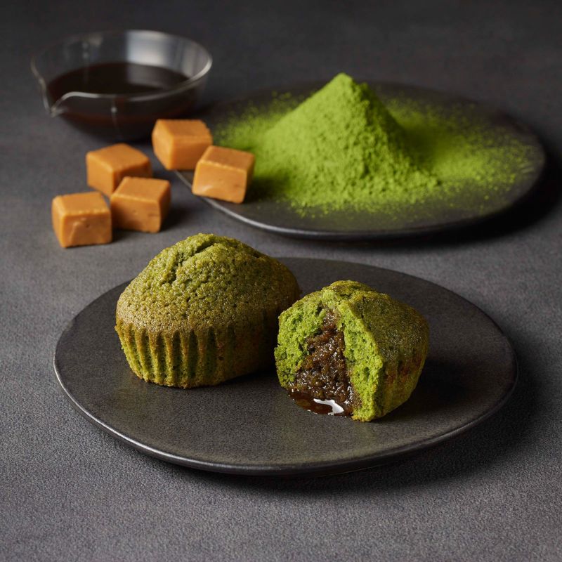 江戸時代中期、元禄年間創業の丸久小山園の宇治抹茶を合わせたフィナンシェ生地に、キャラメルソースを染み込ませました。