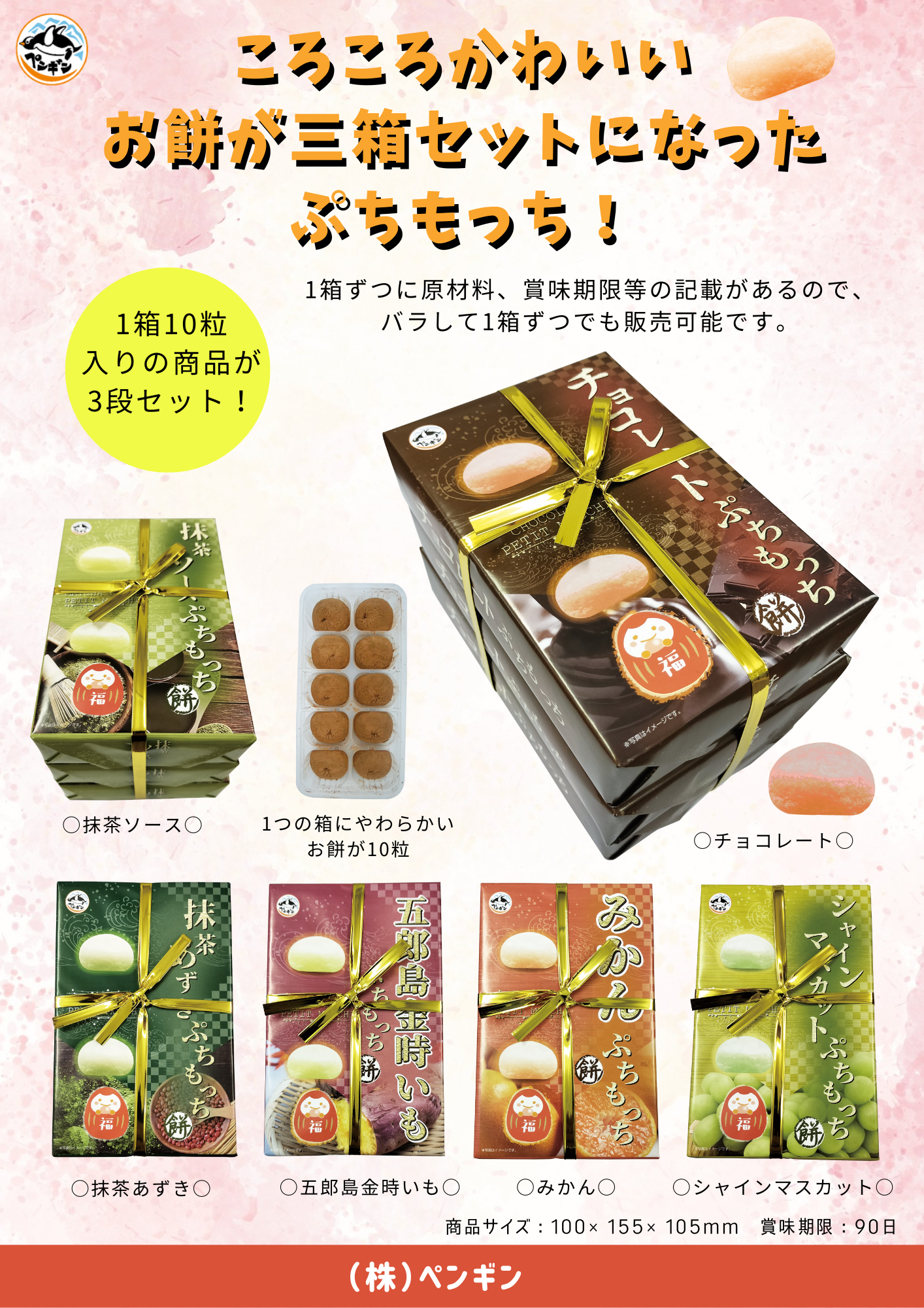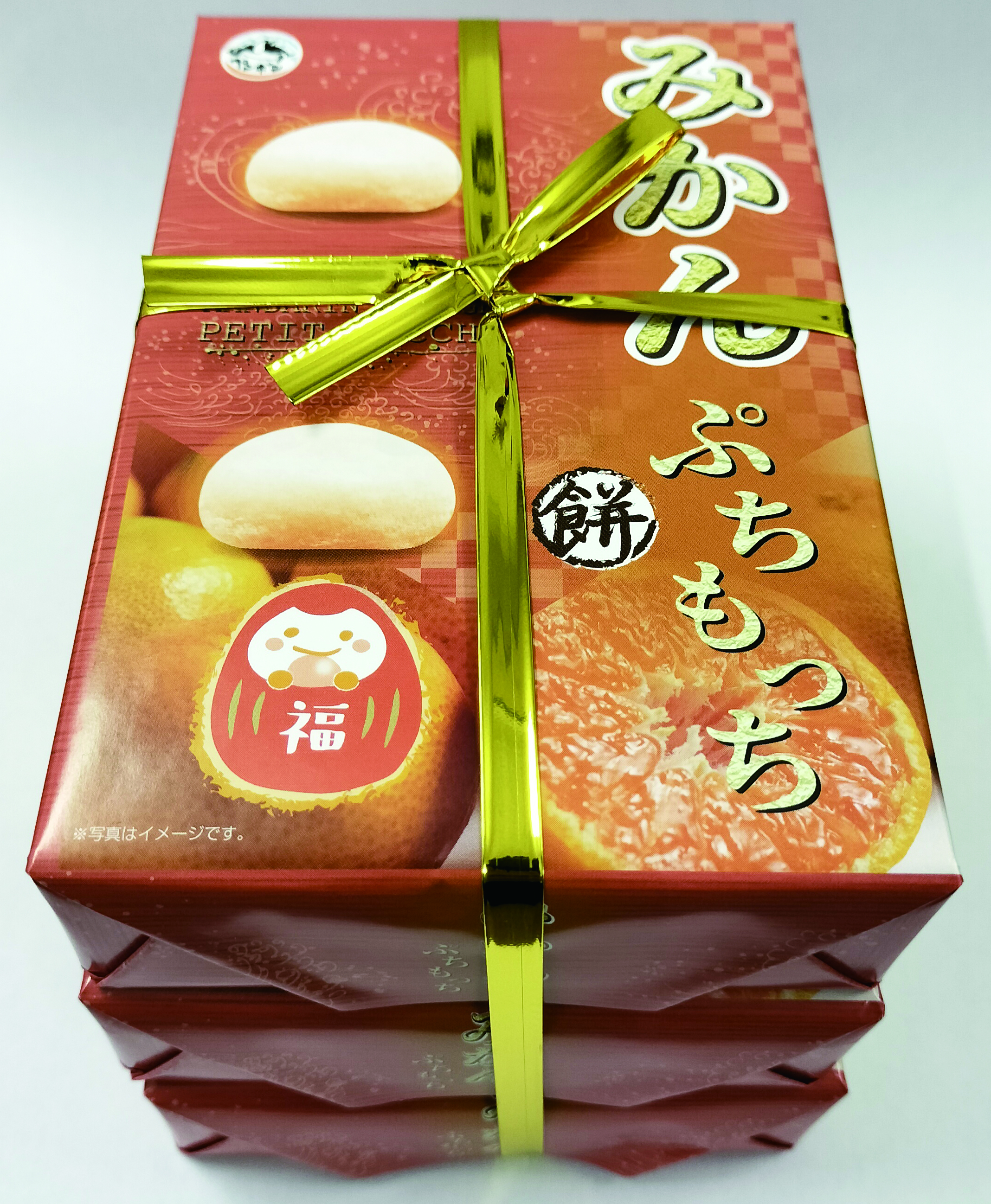 ころころかわいい、お餅が三箱セットになった、ぷちもっち!みかんぷちもっち三段になります。