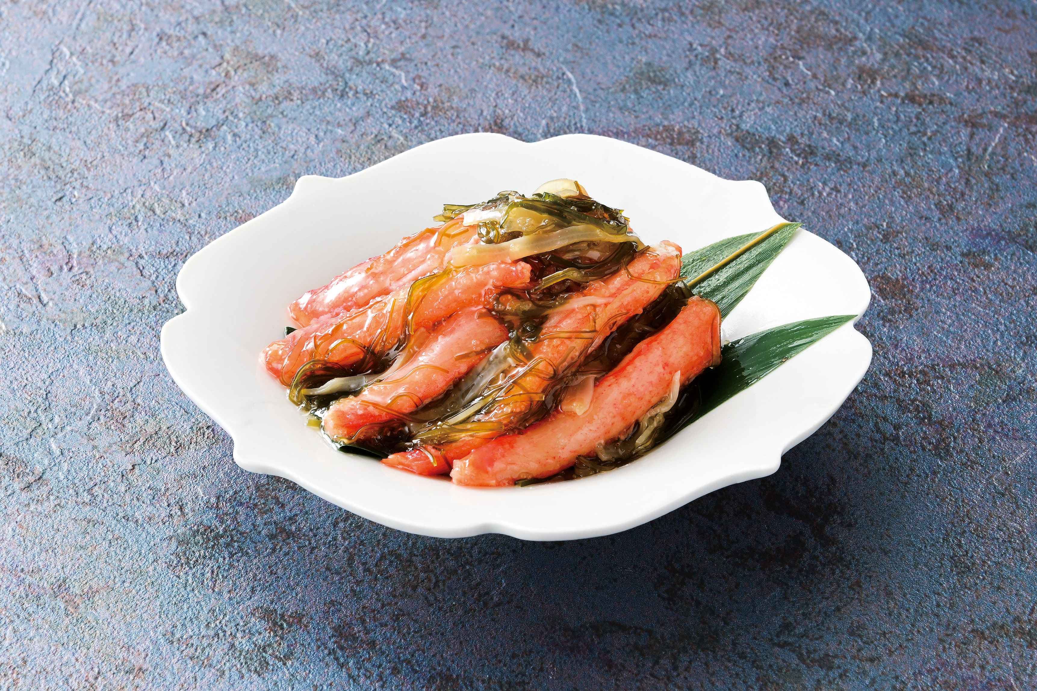 カナダ産本ズワイガニの棒肉を40g、ベースの松前漬を130gの割合で袋詰めしています。ベースの松前漬はかにに合うよう味を設定、上品なダシの味が特長の北海道産真昆布とねばり成分の強い北海道産のがごめ昆布、食感と色合いの良い三陸産の生昆の3種の昆布を配合。しょうゆダレは函館の醤油味噌の老舗メーカーの道南食糧工業のオリジナルブレンド醤油をベースにして、本ズワイガニに合うようカニエキスを配合しました。