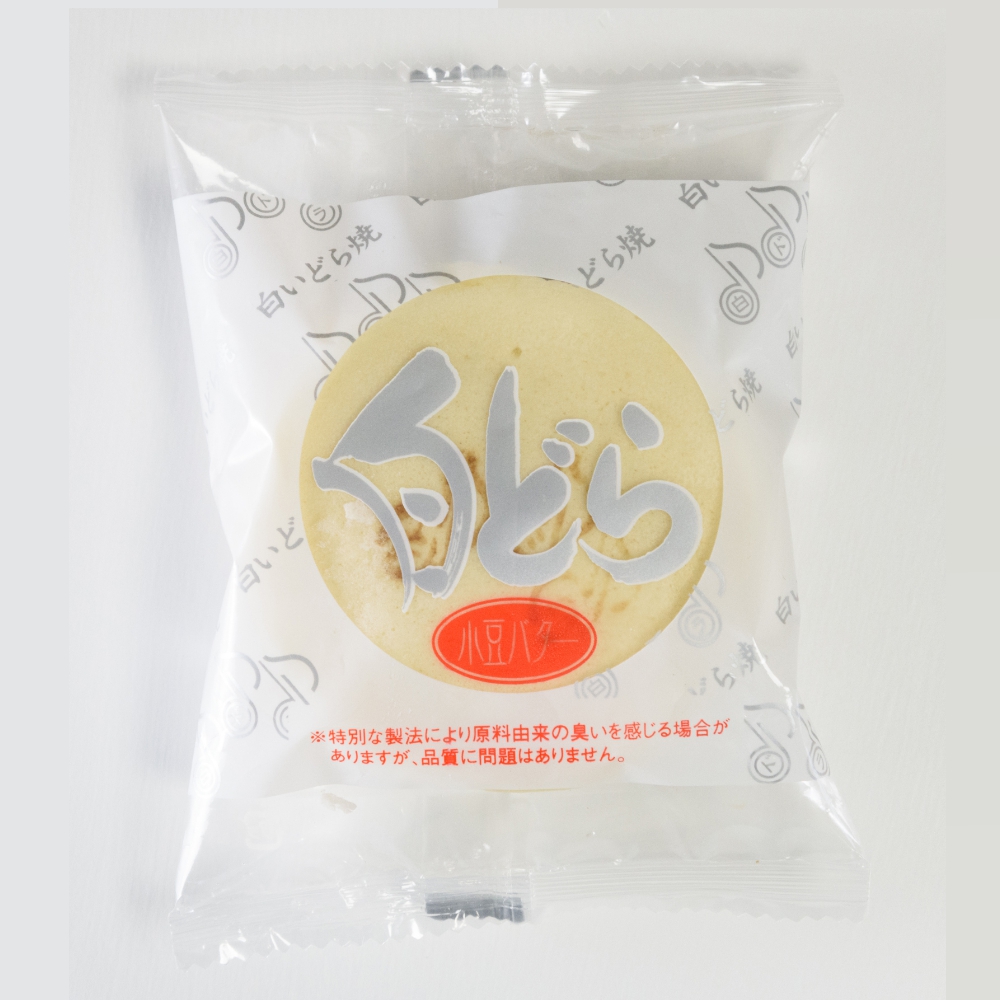 しっとりとした口当たりが優しいふんわりしたこだわりの白皮が目を引く美しい白いどら焼き「白どら」。たっぷりの小豆バターをサンドした、和と洋が上手にまとまった珍しい「どら焼き」です。